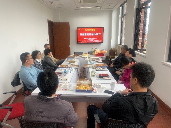 4月24日中午,材料學(xué)院工會(huì)和學(xué)院實(shí)驗(yàn)教學(xué)中心工會(huì)小組在紫金港校區(qū)和同苑材2-606會(huì)議室舉辦鄔震泰老師的榮休儀式。材料學(xué)院副院長程逵,黨委副書記王育萍,實(shí)驗(yàn)教學(xué)中心主任劉芙,實(shí)驗(yàn)室管理主管應(yīng)窕及中心其它教師參加了榮休儀式。儀式由劉芙老師主持。