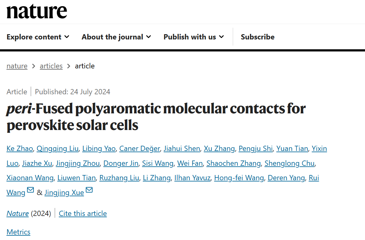 該項(xiàng)研究成果于北京時間2024年7月24日晚11點(diǎn),被國際頂級期刊《自然》在線刊登。該論文的第一作者為浙江大學(xué)薛晶晶課題組和西湖大學(xué)王睿課題組聯(lián)合培養(yǎng)的博士研究生趙可,劉情情和姚利兵為共同第一作者。通訊作者為浙江大學(xué)薛晶晶研究員、西湖大學(xué)王睿研究員,浙大團(tuán)隊(duì)學(xué)術(shù)帶頭人楊德仁院士對此工作給予了重要指導(dǎo)和支持。浙江大學(xué)為該論文的第一單位。