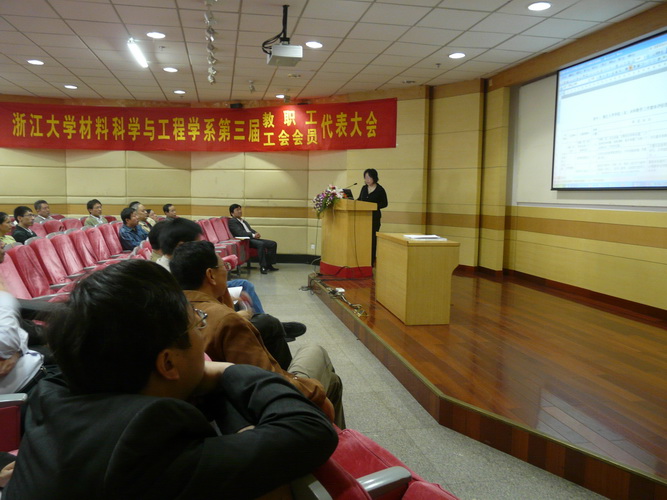 秋高氣爽,丹桂飄香。2009年10月16日上午,浙江大學(xué)材料科學(xué)與工程學(xué)系第三屆教職工、工會(huì)會(huì)員代表大會(huì)第一次會(huì)議在永謙活動(dòng)中心二樓報(bào)告廳舉行。