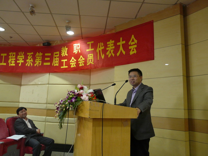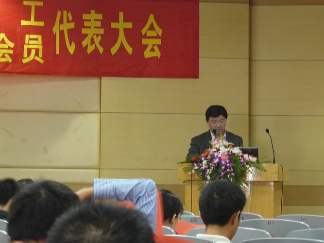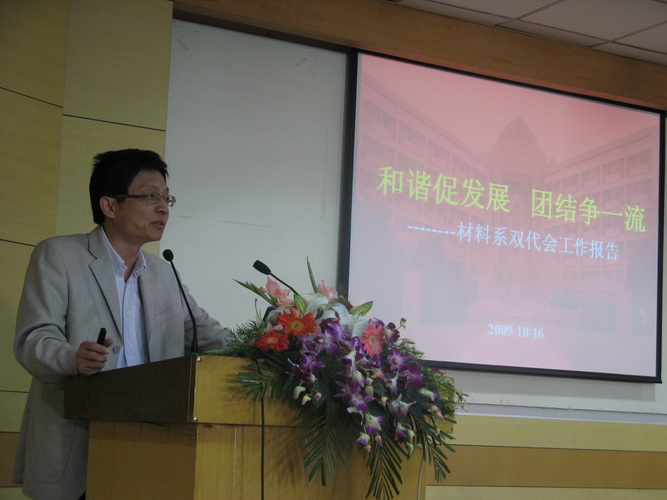 大會(huì)由系黨委主持工作王東副書記主持,校工會(huì)常務(wù)副主席曾廣杰應(yīng)邀出席并講話,他對(duì)材料系在學(xué)科發(fā)展、教學(xué)科研、人才培養(yǎng)上所做的貢獻(xiàn)以及材料系工會(huì)工作給予了高度的評(píng)價(jià)和充分的肯定,并對(duì)材料系今后各項(xiàng)工作的進(jìn)一步發(fā)展提出了殷切的期望和衷心的祝愿。來自兄弟院系化工系的工會(huì)主席陳紀(jì)忠教授也應(yīng)邀出席并為本次會(huì)議致賀詞。
