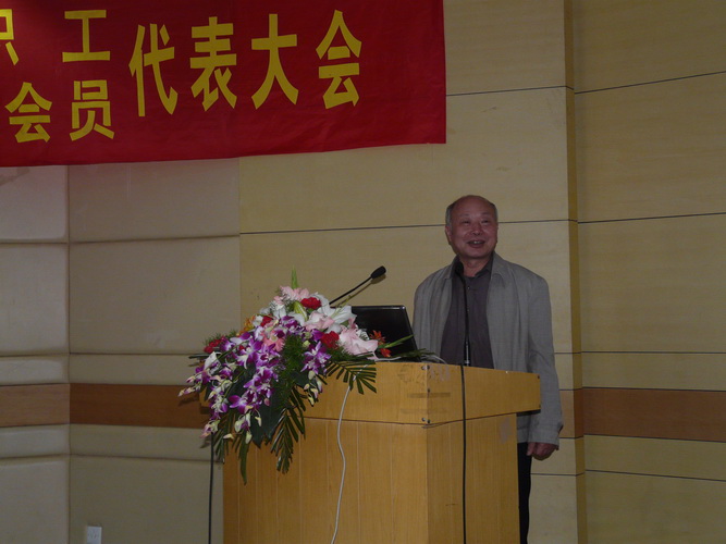 杜丕一教授代表新一屆系工會(huì)發(fā)言,他首先感謝各位代表對(duì)當(dāng)選委員的信任,并號(hào)召全體委員統(tǒng)一思想,全心全意為廣大教職員工服務(wù),不辜負(fù)大家的信任,努力開創(chuàng)工會(huì)工作新局面。