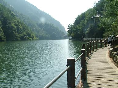 次日,大家又參觀瓊臺仙谷水庫。仙谷水庫位于天臺縣城西北8公里處,從上水庫步行到下水庫途中,翠峰連綿,奇峰紛呈,有激流飛瀑,有涓涓細(xì)流,水純凈剔透,步入其中,彷佛置身仙境,讓人蕩滌去一切塵凡俗慮。老師們在贊嘆祖國大好河山的同時,也被勞動人民的智慧和毅力所感動。