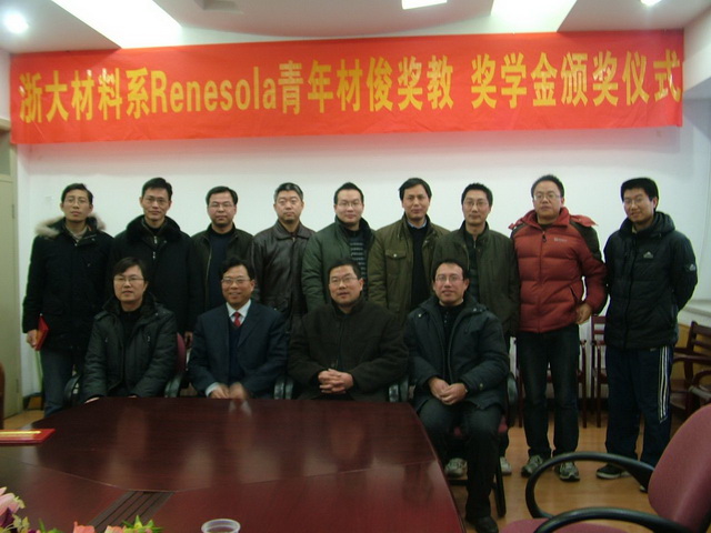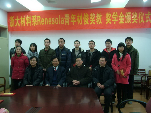 2011年1月19日,材料系在326會(huì)議室隆重舉行了“2010年首屆ReneSola青年材俊獎(jiǎng)教、獎(jiǎng)學(xué)金”的頒獎(jiǎng)儀式。ReneSola青年材俊獎(jiǎng)教旨在獎(jiǎng)勵(lì)在近年來在新材料研究領(lǐng)域取得創(chuàng)新性工作和標(biāo)志性成果的年輕教師;獎(jiǎng)學(xué)金旨在獎(jiǎng)勵(lì)在材料系學(xué)習(xí)、科研開發(fā)和社會(huì)實(shí)踐等領(lǐng)域取得創(chuàng)新性成果的注冊(cè)在校非在職優(yōu)秀研究生和本科生。此次是首次頒獎(jiǎng),共有10位教師和10位同學(xué)獲得了獎(jiǎng)勵(lì)。ReneSola集團(tuán)(浙江昱輝太陽能有限公司)冒雪前來為獲獎(jiǎng)?wù)哳C獎(jiǎng)。頒獎(jiǎng)儀式由系主任葉志鎮(zhèn)教授主持。