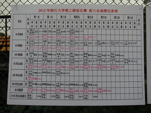 下午,蔣建中老師、趙建江老師、程經(jīng)亮老師參加教工50米自由泳,經(jīng)過(guò)一番較量,蔣建中老師以36.41的好成績(jī)奪得第二名,趙建江獲第六名、程經(jīng)亮獲第七名。房迪老師、袁明永老師再次出戰(zhàn)參加教工50米蛙泳比賽,房迪老師又奪得第二名。