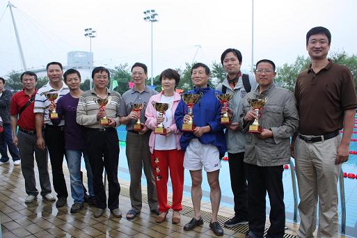 雖然天空時(shí)陰時(shí)晴,氣溫較低,參賽運(yùn)動(dòng)員們依然情緒高昂,在泳池中奮勇拼拼搏,你追我趕,激起陣陣?yán)嘶āI衔纾蚁道钕枥蠋煛②w建江老師率先參加男子100米自由泳比賽,旗開得勝,李翔獲得第二名、趙建江獲得第四名的好成績(jī)。接著,李翔老師克服疲勞,發(fā)揚(yáng)連續(xù)作戰(zhàn)的精神又參加了自由泳200米比賽,再次取得第二名的好成績(jī)。在男子教工100米蛙泳比賽中,我系房迪老師參賽。在泳池中全力拼搏,一舉摘得第一名桂冠。