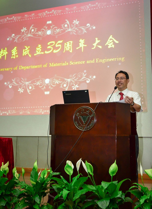 三十五年風(fēng)雨洗禮薪火相傳,三十五載春華秋實(shí)桃李芬芳。在隨后的大會第二議程中,材料系創(chuàng)始人、92歲高齡的王啟東先生發(fā)表講話,他深情回憶了創(chuàng)辦材料系的那段艱苦歷程,感慨如今的材料系科學(xué)成就碩果累累、優(yōu)秀學(xué)子桃李芬芳,他希望,材料人一定要刻苦攻關(guān)、上下求索,要志存高遠(yuǎn)、勇于創(chuàng)新,在實(shí)現(xiàn)中國夢的今天,攜手并進(jìn),共同實(shí)現(xiàn)自己的材料夢。