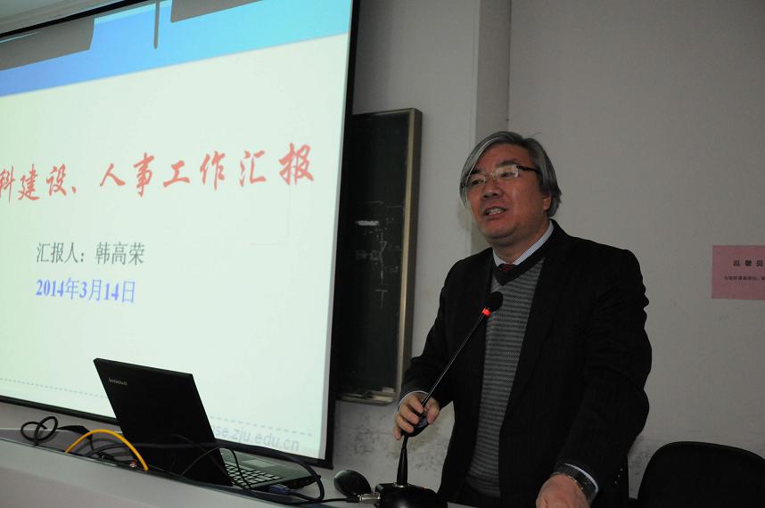 接著,系主任韓高榮教授、副系主任陳立新教授、吳勇軍教授分別就材料系學科建設、人才隊伍建設、本科生教學、研究生教學、科研工作、外事工作、實驗室安全等工作做詳細匯報。會議進一步理順了材料系學科發(fā)展方向和思路,為新學期各項工作順利開展奠定了堅實的基礎。