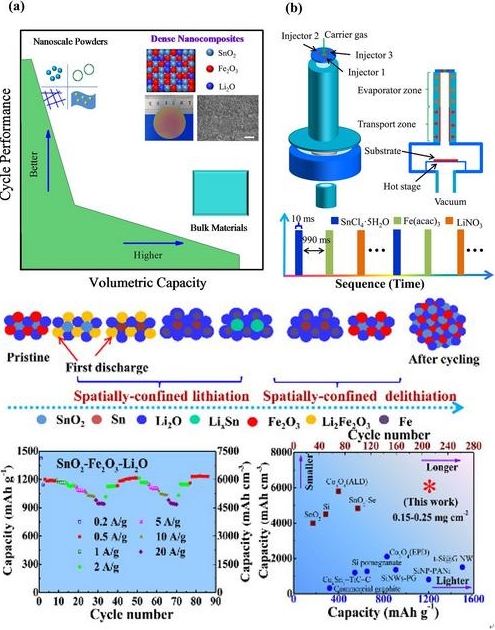 圖1致密電極體系“空間限域”儲(chǔ)放鋰模型及電極性能對(duì)比