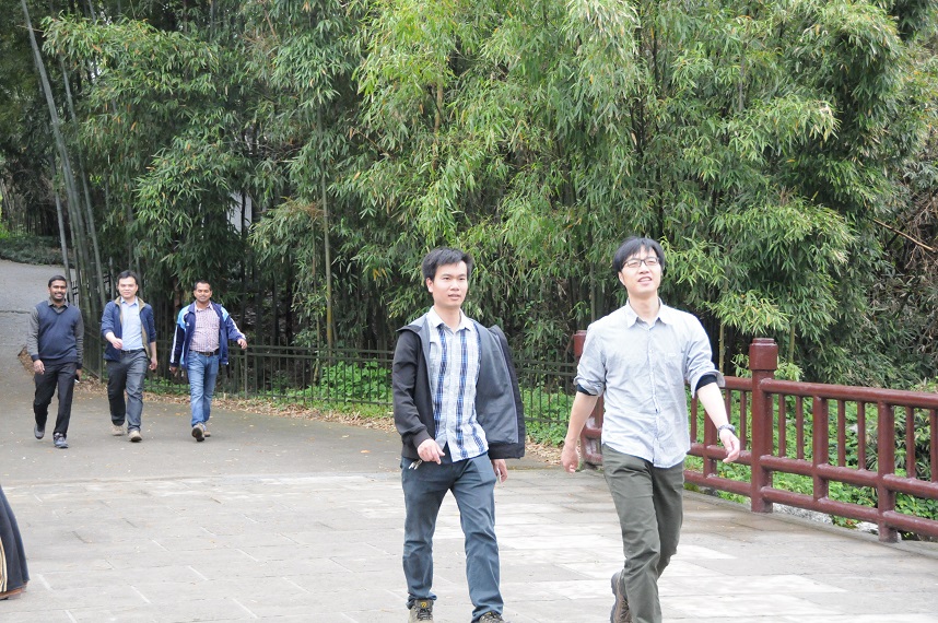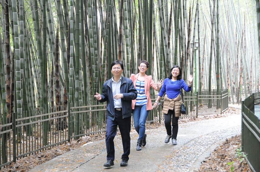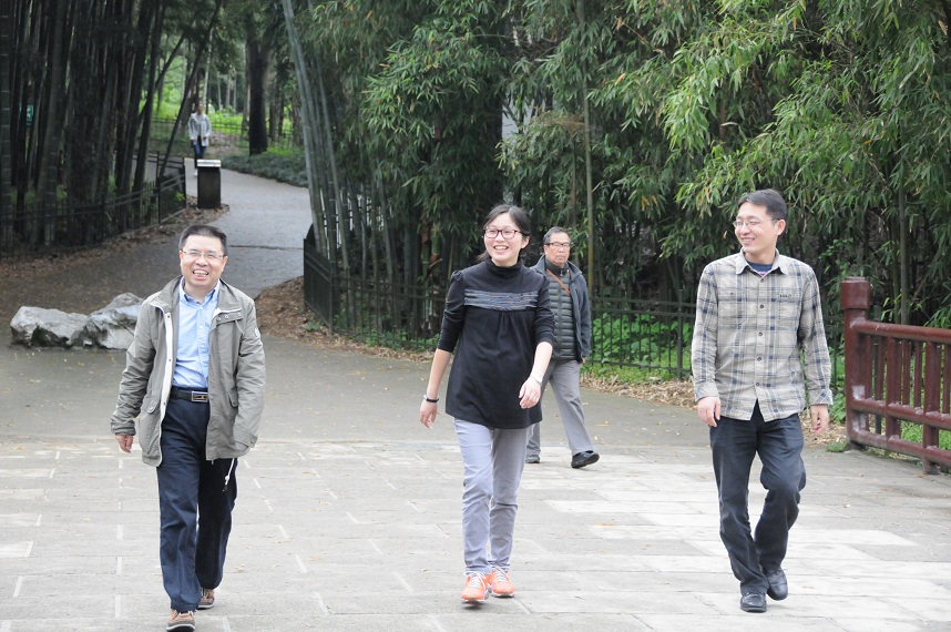 健步走活動(dòng)從中午12:30開始,簡(jiǎn)單的午餐之后,學(xué)院教職工紛紛走出實(shí)驗(yàn)室或辦公室,三五成群,從玉泉校區(qū)出發(fā),經(jīng)青芝塢到達(dá)植物園竹園。雨后的植物園竹林,散發(fā)著沁人的清香,令人心曠神怡。老師們暫時(shí)放下手中繁忙的工作,邁開步伐,呼吸著清新的空氣。大家邊走邊聊天,一個(gè)個(gè)臉上都洋溢著歡快的笑容。