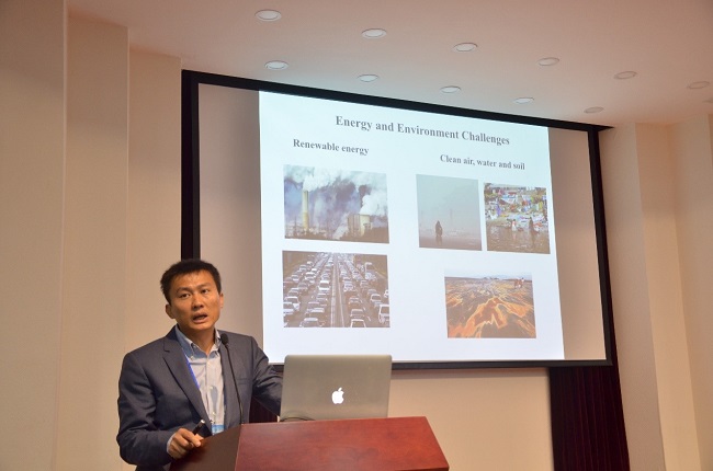 本次研討會(huì)分為一個(gè)大會(huì)報(bào)告和四個(gè)主題分論壇,其中大會(huì)報(bào)告特邀斯坦福大學(xué)的Paul McIntyre教授、Friedrich Prinz教授、崔屹教授和王善祥教授作相關(guān)報(bào)告。幾位報(bào)告人從燃料電池改性、太陽能燃料應(yīng)用、納米纖維空氣凈化器研發(fā)分別進(jìn)行介紹。此外,還介紹了基于生物分子(如蛋白質(zhì)和DNA)標(biāo)記的磁性納米粒子研制的磁傳感器(MNP)在體外診斷肺癌、肝癌、前列腺癌等早期疾病醫(yī)療診斷上的應(yīng)用。