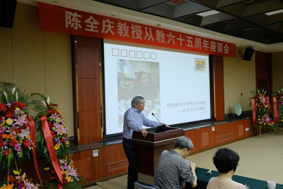 2018年4月28日下午,在陳全慶教授90華誕之際,學(xué)院會(huì)同無(wú)機(jī)非金屬材料研究所在邵逸夫科學(xué)館隆重舉行了陳全慶教授從教六十五周年慶祝座談會(huì)。院長(zhǎng)韓高榮教授,無(wú)機(jī)非金屬材料研究所所長(zhǎng)錢(qián)國(guó)棟教授,陳全慶教授的家人,沈錦林教授,王民權(quán)教授和18位從美國(guó)、荷蘭、英國(guó)、澳大利亞和祖國(guó)各地專(zhuān)程趕來(lái)的學(xué)生參加了座談會(huì)。九十個(gè)春夏秋冬,六十五載的風(fēng)風(fēng)雨雨,陳全慶教授以其淵博的學(xué)識(shí)、嚴(yán)謹(jǐn)?shù)膶W(xué)風(fēng)、勤奮的工作態(tài)度、開(kāi)朗的性格和卓越的社會(huì)活動(dòng)才能,以及她對(duì)社會(huì)主義祖國(guó)的熱愛(ài),在師生中樹(shù)立了崇高的形象,是當(dāng)今知識(shí)分子的楷模。韓高榮院長(zhǎng)代表學(xué)院對(duì)陳全慶先生從教65周年和90華誕表達(dá)了誠(chéng)摯的祝賀,對(duì)陳全慶先生長(zhǎng)期以來(lái)對(duì)浙江大學(xué)作出的貢獻(xiàn)表示了崇高的敬意。