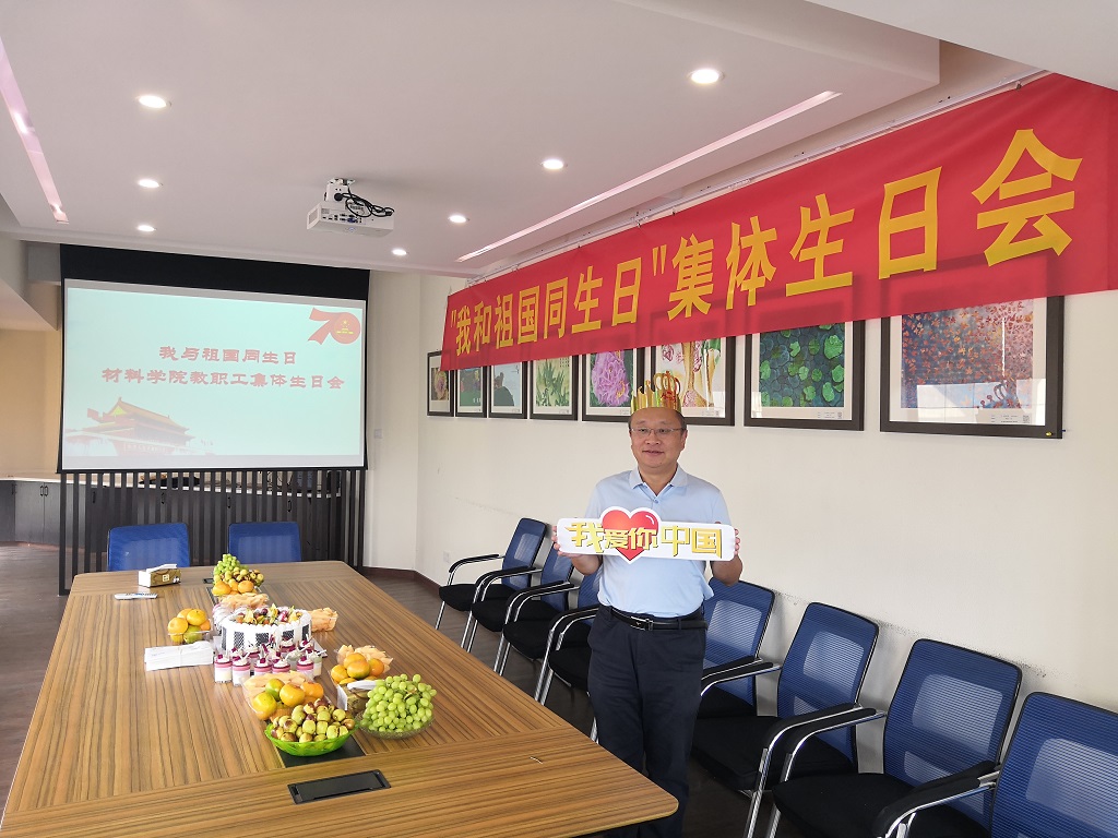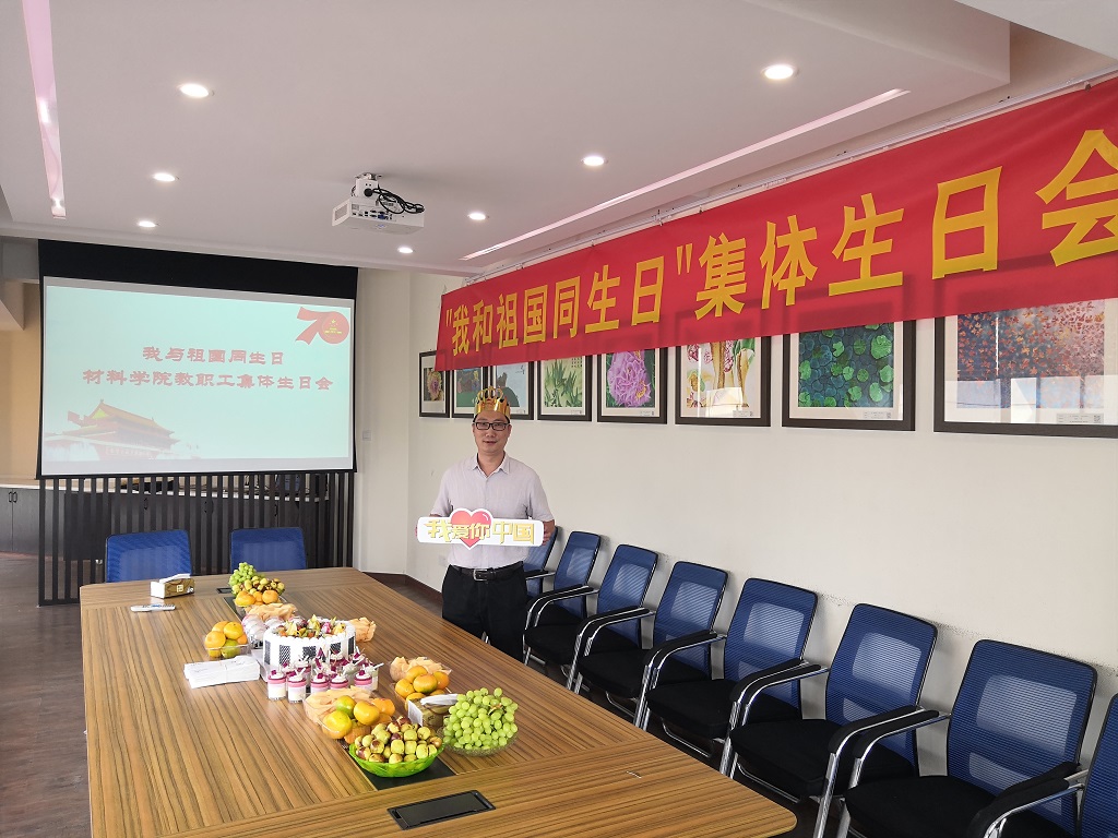 為深入學習貫徹習近平新時代中國特色社會主義思想和黨的十九大精神,隆重慶祝中華人民共和國成立70周年,激發(fā)全院教職工的愛國熱情和工作熱情,9月26日,材料學院在學院遠望廬咖啡吧舉辦“我和祖國同生日”暨9-10月集體生日慶祝活動。學院9-10月份生日的壽星、學院領導、工會委員代表近30位教職工參加了此次活動。集體生日會學院工會副主席楊杭生主持。
