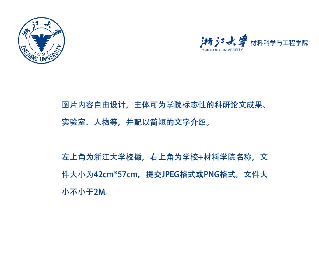圖片的格式要求:左上角為浙江大學(xué)校徽,右上角為學(xué)校+材料學(xué)院名稱,標(biāo)準(zhǔn)格式均可在“浙江大學(xué)官方網(wǎng)站-校情總覽-學(xué)校標(biāo)識”中下載。