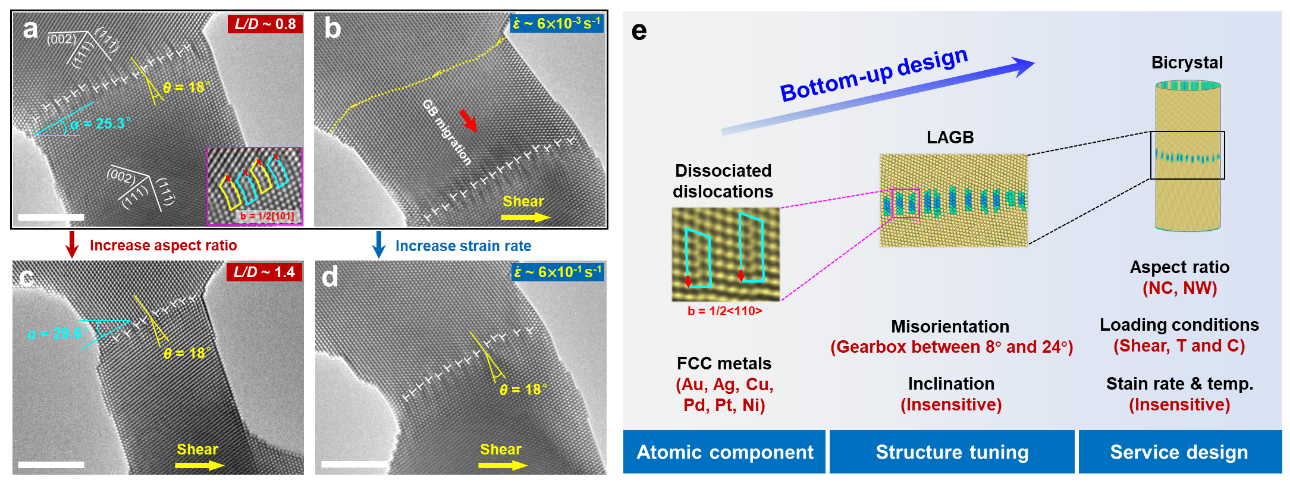 圖4. 晶界結(jié)構(gòu)設(shè)計調(diào)控金屬納米晶體的循環(huán)變形能力。