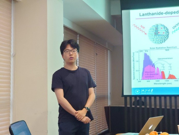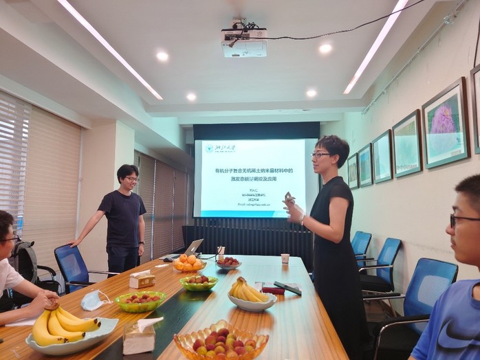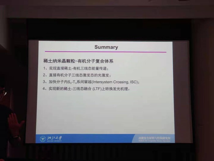鄧老師本次分享的學(xué)術(shù)主題是“有機分子復(fù)合無機稀土納米材料中的激發(fā)態(tài)能量調(diào)控及應(yīng)用”,并就稀土納米晶顆粒-有機分子復(fù)合體系有關(guān)機理展開了詳細介紹。