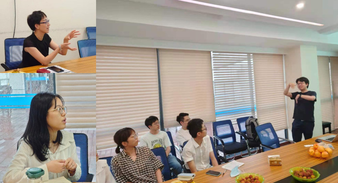 會議期間,參會的師生積極參與討論與提問,提出自己的思考和疑惑,鄧老師耐心地為大家解除疑惑,提供解決方法和思路,親切和藹的態(tài)度和嚴謹?shù)闹螌W(xué)態(tài)度感染了在場的所有師生,讓我們感受到科研與探索的無限魅力。