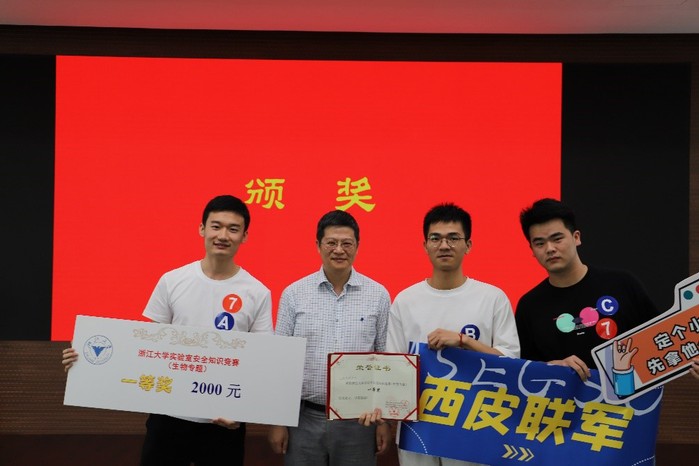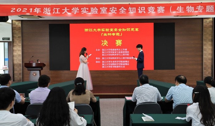 為深入學習宣傳貫徹《安全生物法》,進一步增強全校師生維護生物安全的責任意識,全面提高生物安全治理能力,尤其是提升實驗室生物安全防控水平, 6月29日下午,浙江大學實驗室安全知識競賽(生物專題)決賽在紫金港校區(qū)校友樓紫金港廳舉行。實驗室與設(shè)備管理處處長唐睿康、安全保衛(wèi)處副處長趙增澤、實驗室與設(shè)備管理處實驗室技術(shù)安全管理辦公室主任張銀珠,材料學院黨委書記王曉燕、副院長陳立新、副書記張士良、實驗室秘書應(yīng)窕和團委書記、研究生輔導(dǎo)員李由等老師參加了本次活動。