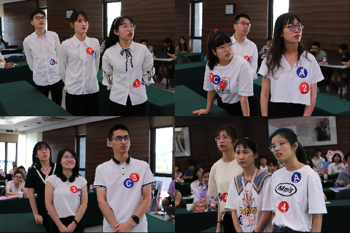 第二環(huán)節(jié)“激流勇進”,八組選手共同上臺搶答,團隊搶答成功后,可由隊伍中任意一位同學給出回答,限時內(nèi)答對得2分,答錯扣1分。競賽選手比搶答速度、比反應(yīng)時間、比心理素質(zhì),各參賽隊伍反應(yīng)迅速、配合默契、沉著應(yīng)對、各展風采,現(xiàn)場氣氛緊張熱烈,競賽進入“白熱化”。