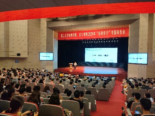 2021年是中國(guó)共產(chǎn)黨成立100周年、新中國(guó)成立72周年,也是“十四五”開(kāi)局之年、新一輪“雙一流”建設(shè)開(kāi)啟之年,為有效落實(shí) “我為師生辦實(shí)事”活動(dòng)安排和愿景使命大討論部署要求,不斷推進(jìn)黨史學(xué)習(xí)教育走深走實(shí),材料學(xué)院、化工學(xué)院于10月8日在玉泉校區(qū)永謙劇場(chǎng)舉行了2021年“先鋒學(xué)子”專(zhuān)題報(bào)告會(huì),邀請(qǐng)浙江物產(chǎn)化工集團(tuán)寧波有限公司董事長(zhǎng)周劍凌作主題報(bào)告,材料學(xué)院和化工學(xué)院共600余位黨員、發(fā)展對(duì)象和入黨積極分子參加本次報(bào)告會(huì)。