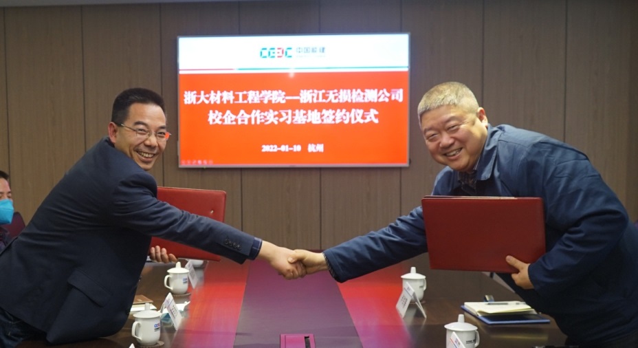 2022年1月10日,通過前期工作及努力,材料學(xué)院本科生校外教學(xué)實(shí)習(xí)基地在中國(guó)能源建設(shè)集團(tuán)浙江火電建設(shè)有限公司掛牌,學(xué)院副院長(zhǎng)程逵教授、本科教學(xué)實(shí)驗(yàn)中心劉芙研究員、盧洋藩老師一行赴浙江火電無損檢測(cè)蕭山基地參加簽約揭牌儀式。浙江火電公司黨委副書記、工會(huì)主席嚴(yán)永禾,無損檢測(cè)公司總經(jīng)理董吉原,無損檢測(cè)公司副總經(jīng)理郭國(guó)均,火電公司人力資源部主任蔣明朝,辦公室副主任許云偉等領(lǐng)導(dǎo)班子成員共同參加基地簽約揭牌儀式。