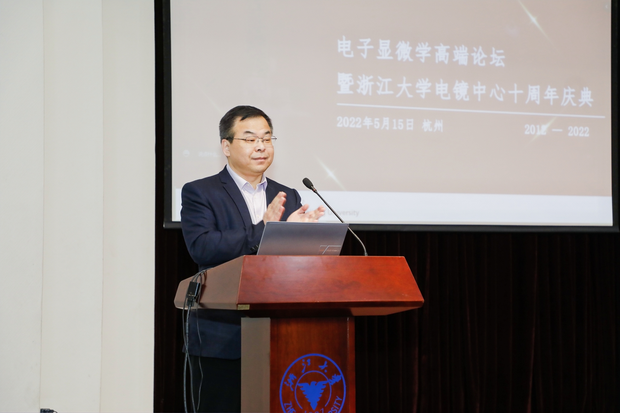 材料學(xué)院院長朱鐵軍和副院長、電鏡中心主任王勇主持十周年活動