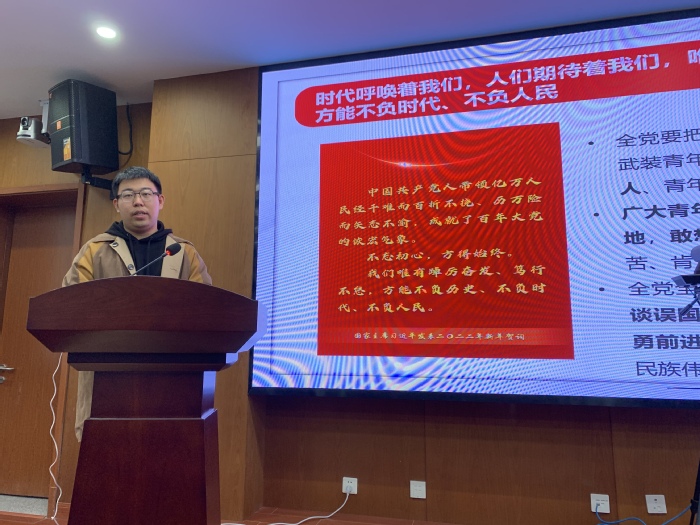 隨后,輔導(dǎo)員包晨琛為支部成員提綱挈領(lǐng)地講述了二十大精神,成員們認(rèn)真傾聽,獲益匪淺。