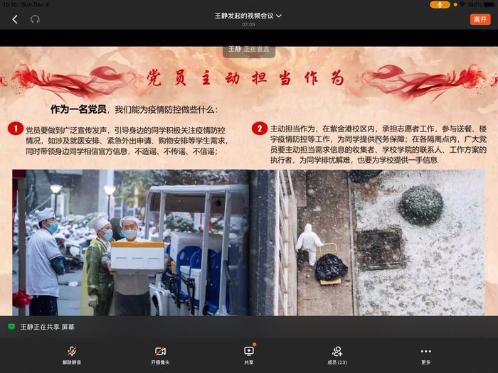 2、主動擔(dān)當(dāng)作為,在紫金港校區(qū)內(nèi),承擔(dān)志愿者工作,參與送餐、樓宇疫情防控等工作,為同學(xué)提供服務(wù)保障;在各隔離點內(nèi),廣大黨員要主動擔(dān)當(dāng)需求信息的收集者、學(xué)校學(xué)院的聯(lián)系人、工作方案的執(zhí)行者,為同學(xué)排憂解難,也要為學(xué)校提供一手信息;