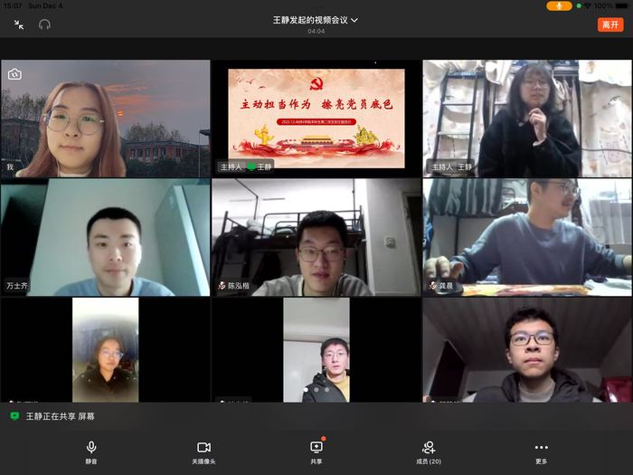 為響應(yīng)學(xué)校號召,進一步加深對當(dāng)前學(xué)校疫情防控工作的認(rèn)識和理解,萬眾一心、眾志成城、咬緊牙關(guān)、共克時艱、互幫互助、同闖難關(guān),材料學(xué)院本科生第二黨支部于2022年12月4日下午15:00許,在釘釘平臺召開了“主動擔(dān)當(dāng)作為 擦亮黨員底色”主題黨日活動。