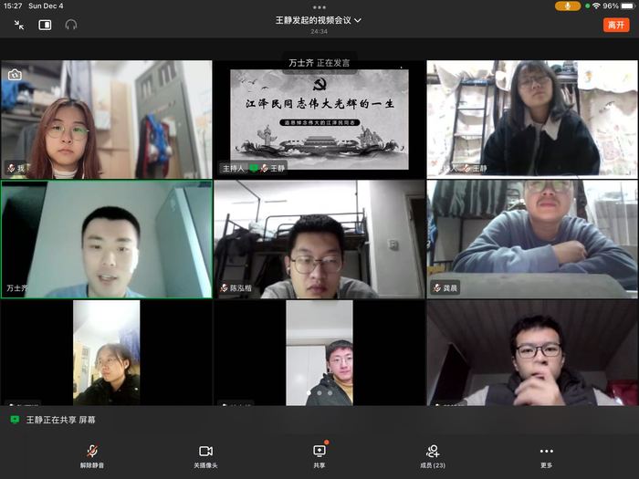 11月30日下午,敬愛的江澤民同志逝世的噩耗傳來,大江南北、長城內(nèi)外,中華大地籠罩在巨大的悲痛之中。2022年12月6日下午15:00,材料科學(xué)與工程學(xué)院本科生第二黨支部召開了以“江澤民同志偉大光輝的一生”為主題的黨日活動(dòng)。會(huì)上,由王靜同志向大家介紹了江澤民同志的生平事跡,萬士齊同志也向同志們介紹了江澤民同志與浙大四校合并的淵源。大家一致表示,要化悲痛為力量,繼承江澤民同志的遺志,更加自覺地團(tuán)結(jié)在以習(xí)近平同志為核心的黨中央周圍,為全面建設(shè)社會(huì)主義現(xiàn)代化國家、全面推進(jìn)中華民族偉大復(fù)興而團(tuán)結(jié)奮斗。