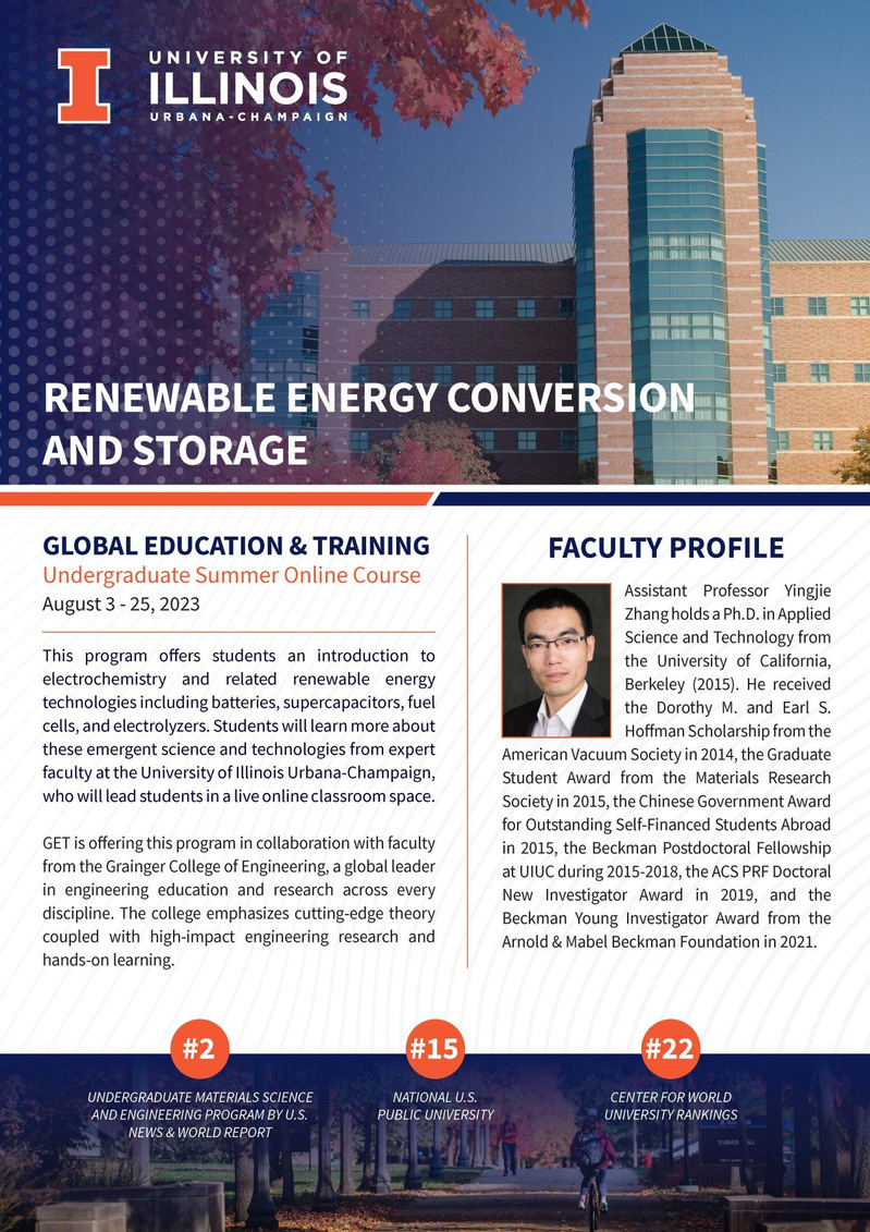 伊利諾伊大學(xué)厄巴納-香檳分校暑期線上課程今年繼續(xù)開放報名。伊利諾伊大學(xué)厄巴納-香檳分校創(chuàng)建于1867年,是一所世界著名的公立研究型大學(xué),是美國“十大聯(lián)盟(Big Ten)”創(chuàng)始成員,美國大學(xué)協(xié)會(AAU)成員,被譽為“公立常春藤”。根據(jù)最新U.S. NEWS 發(fā)布的排行榜,UIUC排名全美公立大學(xué)第15位,材料學(xué)科排名全美本科生教育第2位。