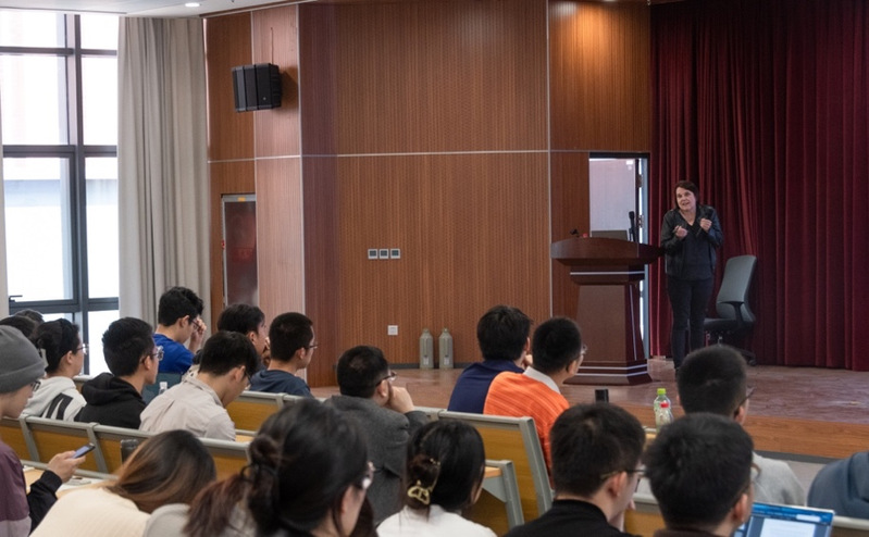 27日上午,F(xiàn)elser教授在紫金港校區(qū)海納苑8幢215報(bào)告廳舉行題為《Chirality and Topology》的講座,現(xiàn)場(chǎng)近200名師生聆聽(tīng)了她的報(bào)告。