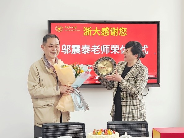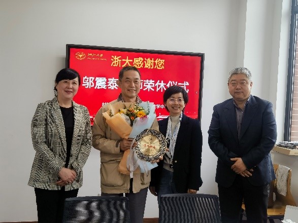4月24日中午,材料學(xué)院工會(huì)和學(xué)院實(shí)驗(yàn)教學(xué)中心工會(huì)小組在紫金港校區(qū)和同苑材2-606會(huì)議室舉辦鄔震泰老師的榮休儀式。材料學(xué)院副院長程逵,黨委副書記王育萍,實(shí)驗(yàn)教學(xué)中心主任劉芙,實(shí)驗(yàn)室管理主管應(yīng)窕及中心其它教師參加了榮休儀式。儀式由劉芙老師主持。