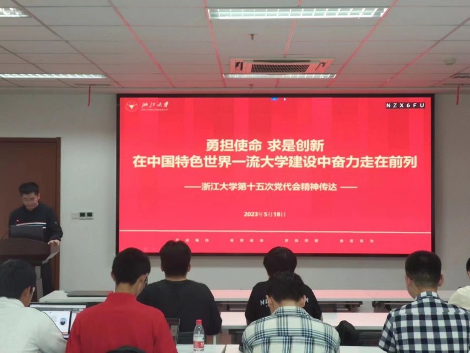 林思宸向本科生一支部全體成員傳達了浙江大學第十五次黨代會精神。2023年4月16日至17日,浙江大學第十五次黨代會順利召開,本次黨代會的主題:以習近平新時代中國特色社會主義思想和習近平總書記對學校的重要指示精神為指導,牢記囑托、勇?lián)姑_拓創(chuàng)新、奮發(fā)有為,扎根中國大地加快走世界一流大學前列,努力為中國式現(xiàn)代化全面推進中華民族偉大復興作出積極貢獻!