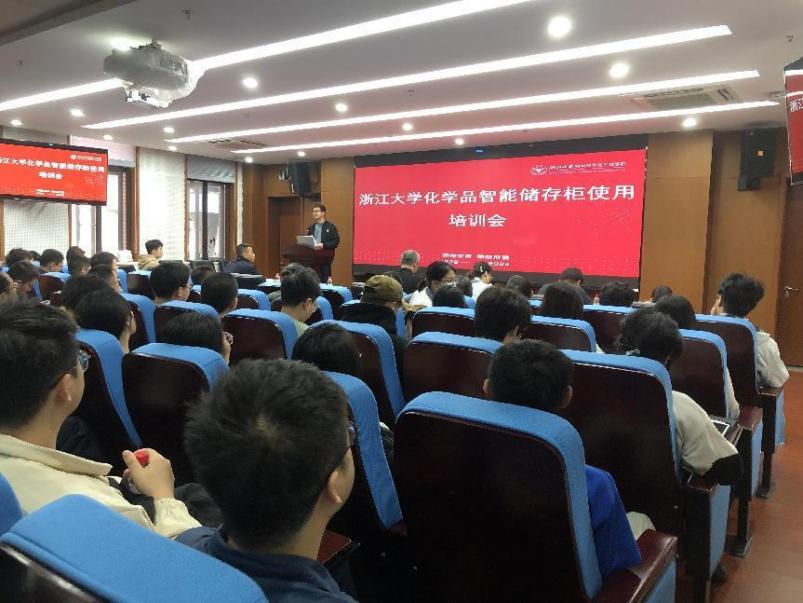 本次培訓會由材料科學與工程學院王勇副院長主持,學院邀請實驗室與設備管理處胡凱副處長、西湖區(qū)求是派出所任曉波警官、智能試劑柜廠家出席會議,實驗室與設備管理處技安辦工作人員、涉化課題組、督查小組成員等共110余名師生參加了會議。