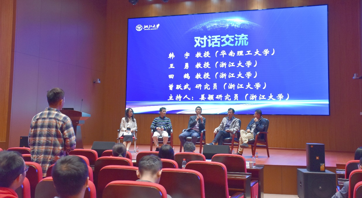 隨后,韓宇教授、王勇教授以及田鶴教授、曾躍武研究員共同上臺(tái),和與會(huì)人員進(jìn)行了對(duì)話交流,對(duì)高端電鏡技術(shù)可以在哪些研究領(lǐng)域應(yīng)用、應(yīng)用高端電鏡技術(shù)探索玻璃微觀結(jié)構(gòu)、生物材料結(jié)構(gòu)的可行性等具體問題進(jìn)行了深入的討論。