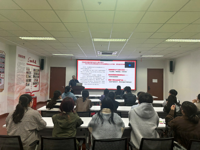 程逵老師從兩會簡介、政府工作報告、2024全國兩會新詞熱詞、浙大人的“兩會聲音”四個方面進行了分享,就擴大內(nèi)需、深化改革、醫(yī)療保障等熱點問題展開了熱烈的討論。報告指出,過去一年,是全面貫徹黨的二十大精神的開局之年,是本屆政府依法履職的第一年。 報告還指出要“大力推進現(xiàn)代化產(chǎn)業(yè)體系建設,加快發(fā)展新質(zhì)生產(chǎn)力。”程老師分析了新三樣熱詞和材料學科之間的聯(lián)系,結合產(chǎn)業(yè)化改造、光伏半導體、鋰電電機等內(nèi)容。最后,程老師向同學們介紹了參與兩會的五位浙大人,心懷“國之大者”,立足人民群眾的實際需求,積極發(fā)揮好自身優(yōu)勢,切實發(fā)現(xiàn)問題并推動解決問題。