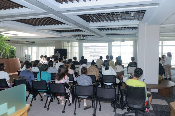 第一站,東京大學(xué)。7月1日上午,訪學(xué)團(tuán)與東京大學(xué)團(tuán)隊(duì)在國際研究中心開展研討會(huì)。在研討會(huì)上,眞弓皓一(Koichi Mayumi)教授向浙大材料師生一行表示熱烈的歡迎,并介紹了東京大學(xué)材料學(xué)科在學(xué)生培養(yǎng)、科研理念、學(xué)術(shù)交流上的發(fā)展,以及其所在的團(tuán)隊(duì)在固體物理研究方向的成果。隨后, 片島拓彌(Takuya Katashima)教授以簡短的影片引入,向訪學(xué)團(tuán)介紹了生物工程系和他的團(tuán)隊(duì)。東京大學(xué)生物工程系著眼于醫(yī)療和醫(yī)療保健的數(shù)字化轉(zhuǎn)型,他們將研究和教育相結(jié)合,采用獨(dú)特的課程——醫(yī)學(xué)和工程共同教育計(jì)劃、社會(huì)實(shí)施的生物工程練習(xí),培養(yǎng)社會(huì)需求的具有高專業(yè)知識(shí)和領(lǐng)導(dǎo)技能的專業(yè)人士。訪學(xué)團(tuán)成員對(duì)兩位教授的講解深感興趣,大家主動(dòng)提問、積極交流,在研討會(huì)的交流環(huán)節(jié)深入探討了相關(guān)內(nèi)容。