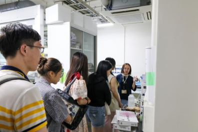 下午,訪學(xué)團(tuán)參觀了Takuya Katashima教授團(tuán)隊(duì)的實(shí)驗(yàn)室。團(tuán)隊(duì)的研究生們帶領(lǐng)訪學(xué)團(tuán)親自感受粘彈性液體材料的魅力,與訪學(xué)團(tuán)交流了這一材料的特性、制備方法、表征方法和表征儀器等。在參觀過程中,訪學(xué)團(tuán)見到了許多在理論課中學(xué)過但是未親自使用的表征儀器以及輔助設(shè)施,這讓訪學(xué)團(tuán)領(lǐng)略到材料科學(xué)領(lǐng)域的專業(yè)性與復(fù)雜性,激勵(lì)著訪學(xué)團(tuán)向未知與不確定的知識(shí)與實(shí)驗(yàn)前行。
