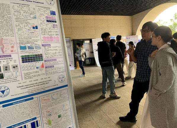 隨后,活動(dòng)進(jìn)入自由討論與展示環(huán)節(jié)。參展的研究生向前來觀摩的師生詳細(xì)地介紹,并就自己研究領(lǐng)域問題進(jìn)行探討,現(xiàn)場(chǎng)討論聲此起彼伏,同學(xué)們交流熱烈。