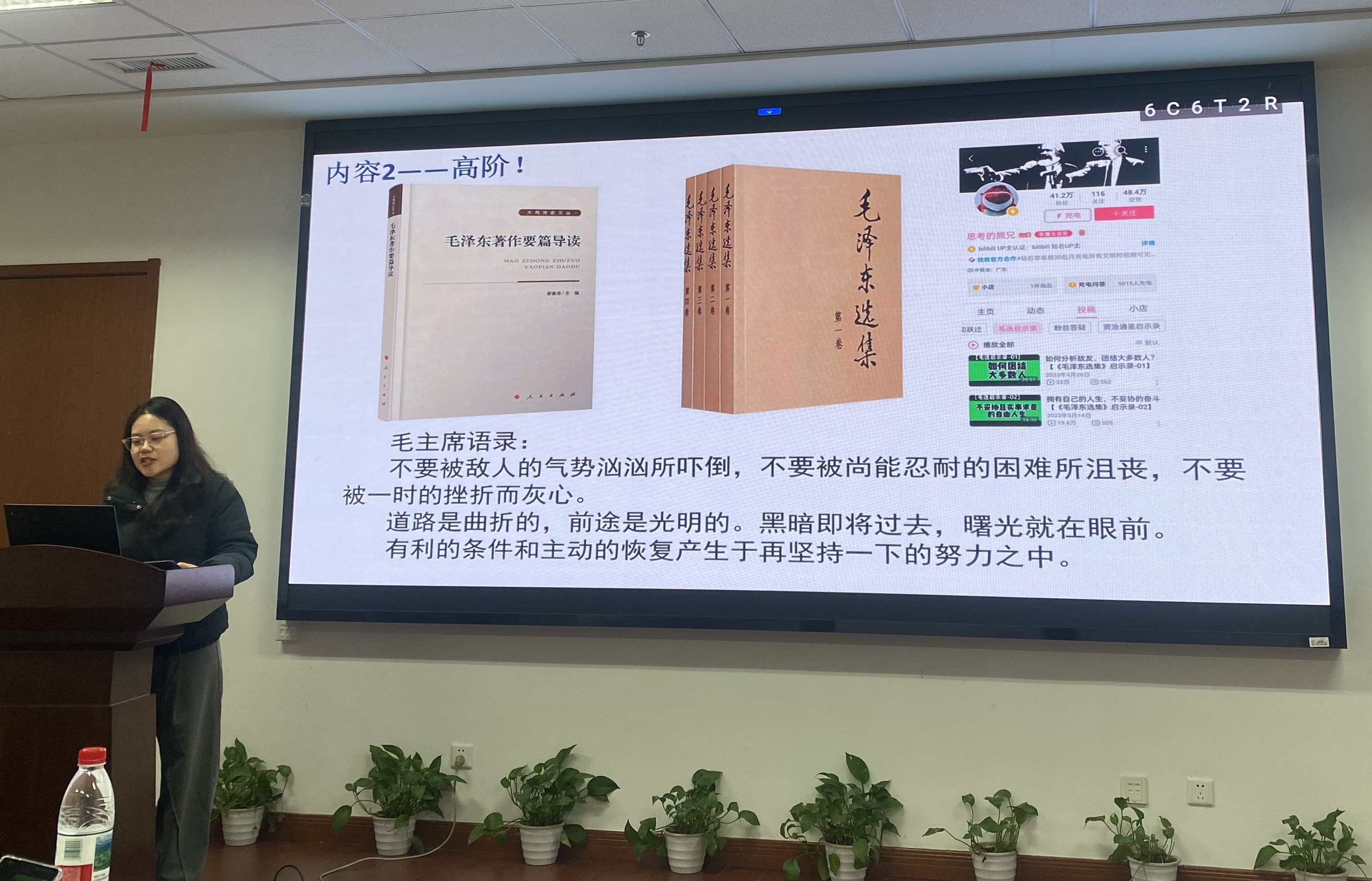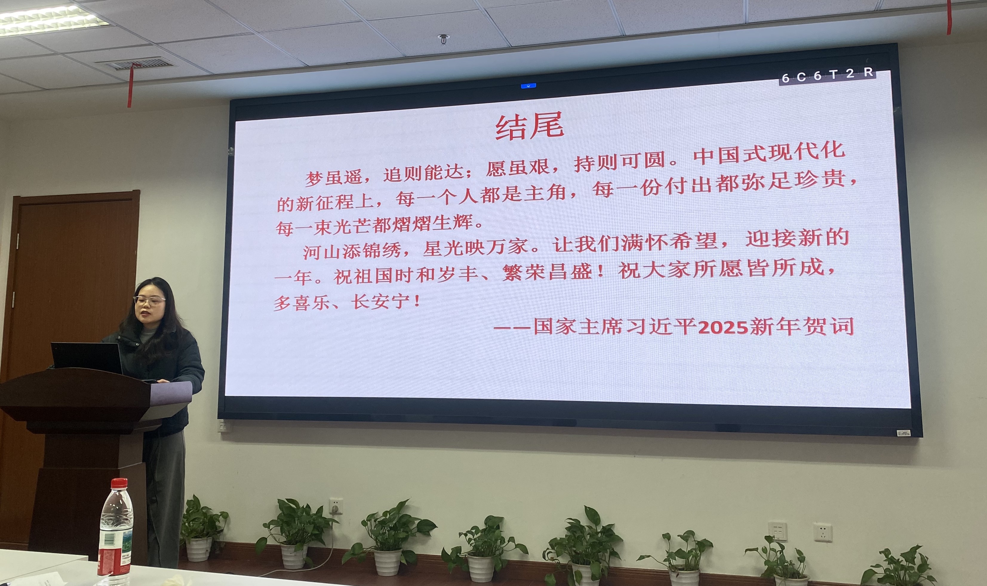首先,是支部的一人一課微黨課環(huán)節(jié),鄭仕奇同學(xué)在新年伊始為大家?guī)砹艘粓?chǎng)有聲有色的微黨課,主題是“快樂地走近政經(jīng)的天地”。鄭同學(xué)從趣味性較強(qiáng)的自媒體介紹出發(fā),讓同志們?cè)谛β曋蓄I(lǐng)略到國(guó)際局勢(shì)的微妙變動(dòng)、祖國(guó)的強(qiáng)大。之后分享了自己閱讀《鄧小平時(shí)代》、《置身事內(nèi)》、《毛澤東選集》的心得感悟,其中一些語(yǔ)段引人共鳴,激起同志們的閱讀熱情,例如《毛選》中“有利的條件和主動(dòng)的恢復(fù)產(chǎn)生于再堅(jiān)持一下的努力之中”,大家不禁跟著默讀起來。鄭同學(xué)總結(jié)說,我們多接觸一些時(shí)政類的視頻,或許就能發(fā)現(xiàn)自己感興趣的點(diǎn),通過這些點(diǎn)我們會(huì)去追問原因,畢竟我們是工科碩博生,于是就會(huì)產(chǎn)生關(guān)注當(dāng)下政策會(huì)議精神、閱讀紅色經(jīng)典書籍的動(dòng)力,我們開黨會(huì)的時(shí)候也不會(huì)覺得枯燥無味了。大家紛紛點(diǎn)頭。最后,鄭同學(xué)引用習(xí)近平總書記2025新年賀詞中的一段作結(jié),“夢(mèng)雖遙,追則能達(dá);愿雖艱,持則可圓。中國(guó)式現(xiàn)代化的新征程上,每一個(gè)人都是主角,每一份付出都彌足珍貴……讓我們滿懷希望,迎接新的一年。祝祖國(guó)時(shí)和歲豐、繁榮昌盛!祝大家所愿皆所成,多喜樂、長(zhǎng)安寧!”講畢,掌聲如潮。
