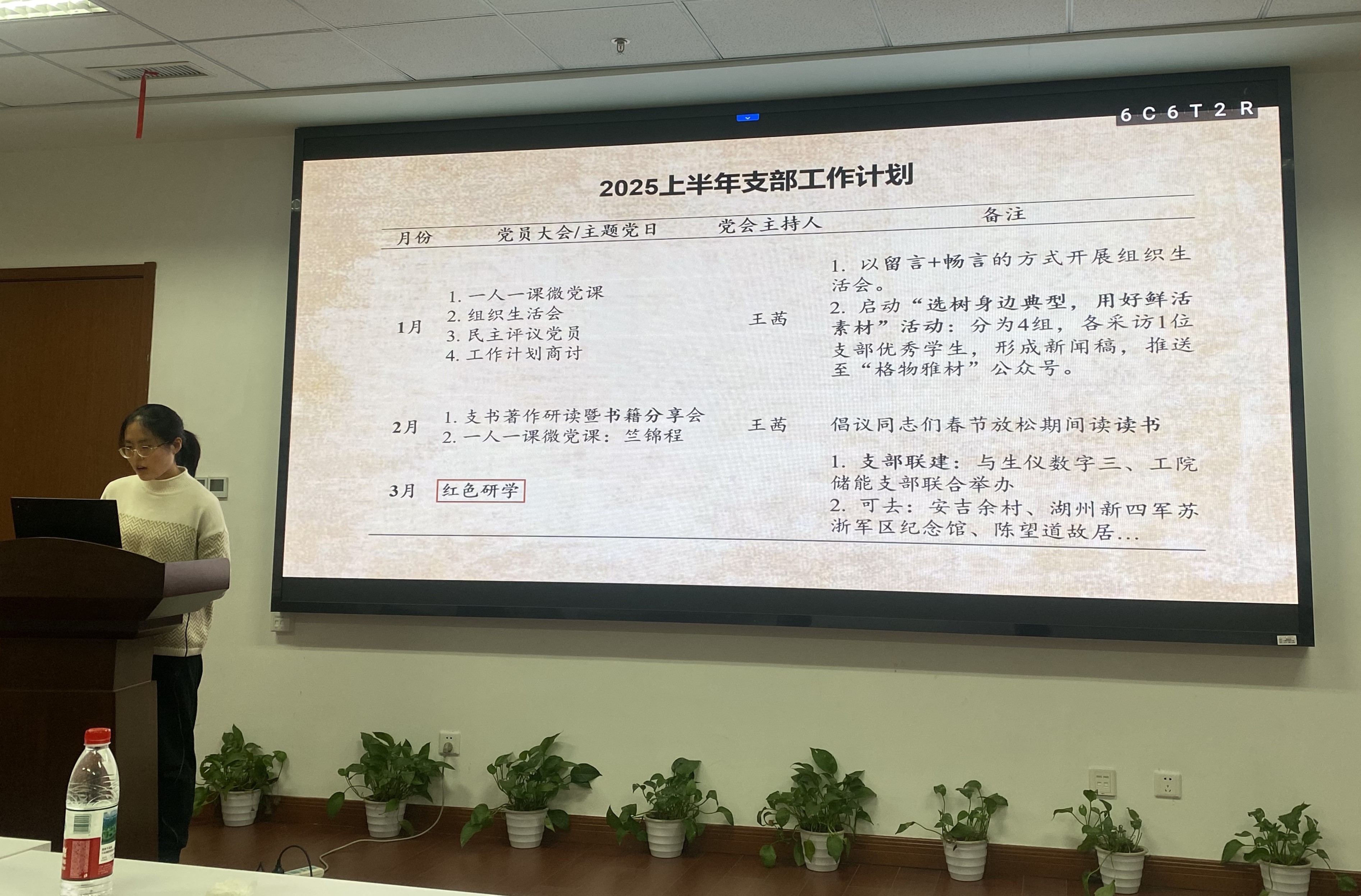 2025年1月6日,材料物理所研究生第一黨支部在和同苑9幢材1-210召開了黨員大會(huì)。本次黨會(huì)以“互評(píng)互批促黨建,凝心聚力譜新篇”為主題,內(nèi)容包括微黨課、組織生活會(huì)、民主評(píng)議黨員和未來工作計(jì)劃安排。會(huì)議應(yīng)到黨員30人,實(shí)到27人,請(qǐng)假3人,由支書王茜主持。