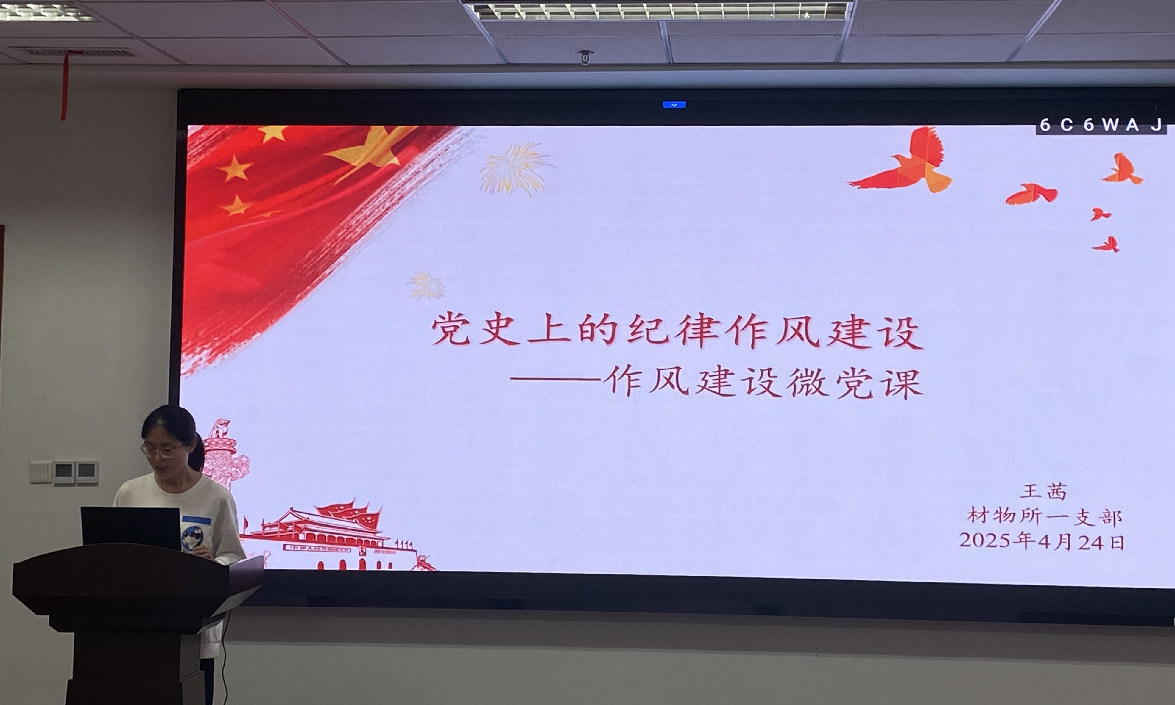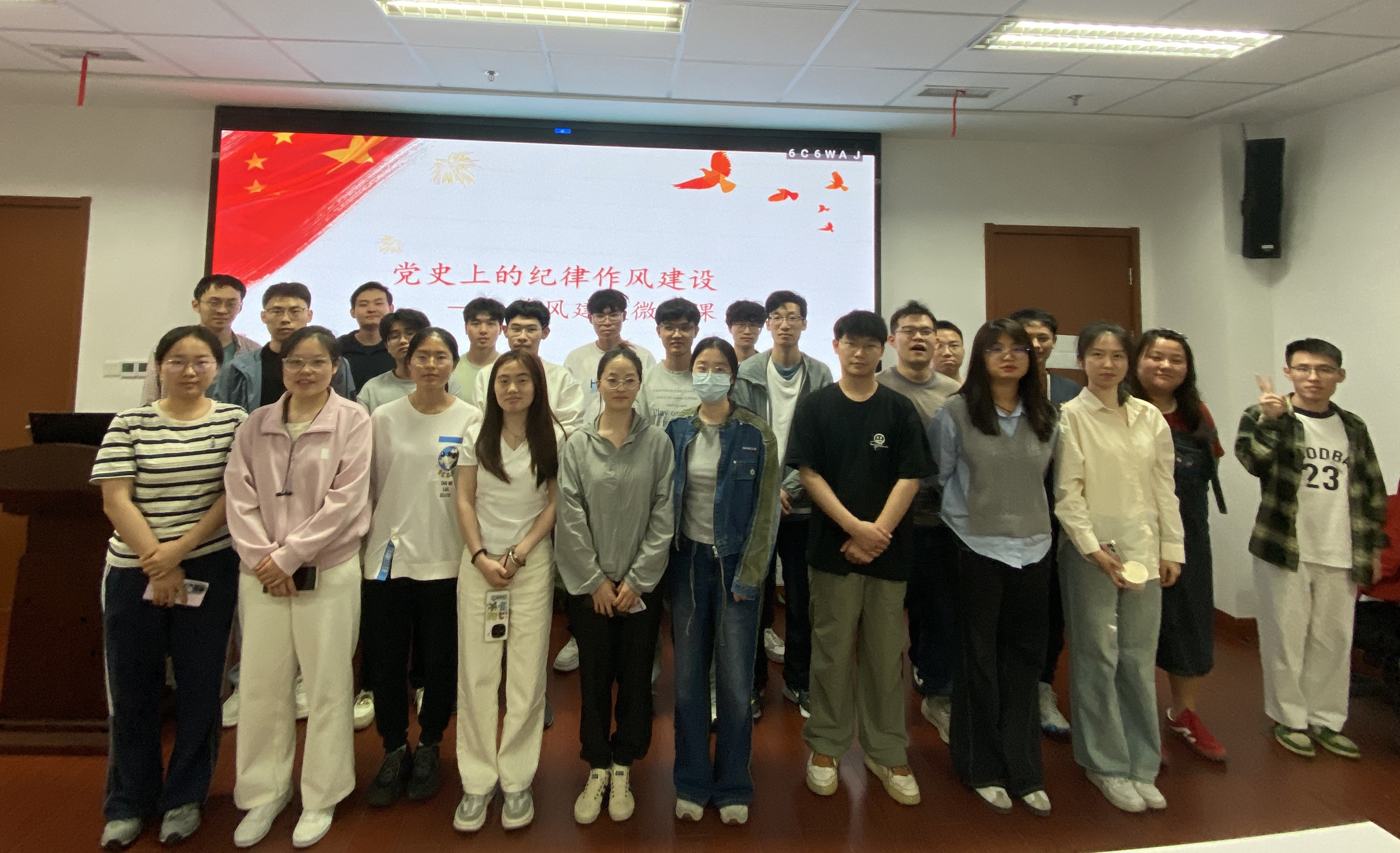 接著,王茜同志以“黨史上的紀(jì)律作風(fēng)建設(shè)”為主題開展了作風(fēng)建設(shè)微黨課。她先播放了一首傳唱近百年的軍歌,歌聲慷慨激揚、黑白畫面一下子把人帶入上世紀(jì)。互動環(huán)節(jié)嚴(yán)曉踐同志答出這首歌就是《三大紀(jì)律八項注意》。隨后,王茜同志就帶領(lǐng)大家重溫了“三大紀(jì)律八項注意”的形成和演變過程、產(chǎn)生的影響,并分享了自己的心得感悟。1927年,毛澤東率領(lǐng)部隊趕赴井岡山,行軍路上戰(zhàn)士們挖了村民的紅薯充饑,毛澤東得知后隨即向部隊發(fā)表講話,宣布三條規(guī)矩:行動聽指揮、不拿老百姓一個紅薯、打土豪要歸公。1928年,部隊進駐遂川縣城,出現(xiàn)借門板不還、買賣不公等問題。毛澤東立刻召開大會,提出六項注意:上門板;捆鋪草;說話和氣;買賣公平;借東西要還;損壞東西要賠。次年,根據(jù)形勢的發(fā)展和部隊的實踐經(jīng)驗,六項注意中又增加兩項,“三大紀(jì)律八項注意”正式成型。戰(zhàn)士們把這些紀(jì)律刷在墻上、寫在包袱布上,走到哪里就宣傳執(zhí)行到哪里,贏得了黨和紅軍在群眾中的凝聚力和號召力。1961年,面對黨員干部“瞎指揮”“生活特殊化”等五風(fēng)問題,中央仿照軍隊紀(jì)律,出臺《黨政干部三大紀(jì)律八項注意》,首次明確“一切從實際出發(fā)”、“沒有調(diào)查沒有發(fā)言權(quán)”等規(guī)定,這為確保黨員干部團結(jié)廣大人民戰(zhàn)勝當(dāng)時面臨的困難發(fā)揮了積極作用。2012年,《中央八項規(guī)定》出臺,從“輕車簡從”到“厲行節(jié)約”,延續(xù)著“三大紀(jì)律八項注意”的精神血脈。王茜同志分享說,就像做課題研究,“三大紀(jì)律八項注意”一開始也只是個模糊的想法,在不斷實踐、發(fā)現(xiàn)問題、改進方法的過程中,慢慢形成了完整的體系。從“不拿老百姓一個紅薯”的小禁令,一步步發(fā)展成影響深遠(yuǎn)的紀(jì)律規(guī)范,這背后藏著的是我們黨超強的學(xué)習(xí)能力和自我革新意識。現(xiàn)在再回頭看,紀(jì)律從來都不是束縛我們的枷鎖,而是幫我們走得更穩(wěn)、更遠(yuǎn)的指南針。當(dāng)我們把這種嚴(yán)守紀(jì)律的精神融入日常,無論是搞科研、做項目,還是未來走上工作崗位,都能更有底氣。希望我們帶著這份對紀(jì)律的敬畏之心,為自己的成長之路注入力量!