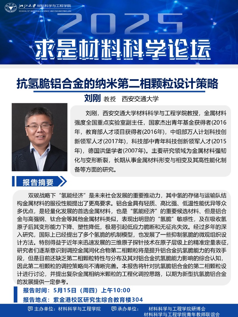 【求是材料科學(xué)論壇】2025年3期:關(guān)于西安交通大學(xué)劉剛教授報(bào)告會(huì)的通知
