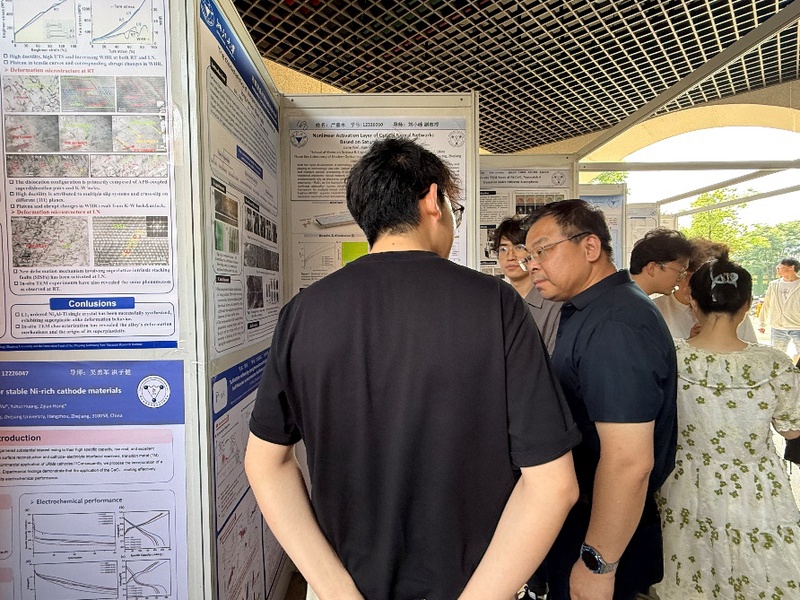 為進(jìn)一步加強(qiáng)我院研究生的教育管理,提高研究生的培養(yǎng)質(zhì)量,促進(jìn)不同年級(jí)、不同領(lǐng)域的同學(xué)交流科研經(jīng)驗(yàn),加快國際一流水平學(xué)科的建設(shè),浙江大學(xué)材料科學(xué)與工程學(xué)院于5月26日下午,在材料學(xué)院天井處舉行了浙江大學(xué)第505期博士生創(chuàng)新論壇暨材料學(xué)院2025年研究生學(xué)術(shù)成果墻報(bào)(Poster)展。