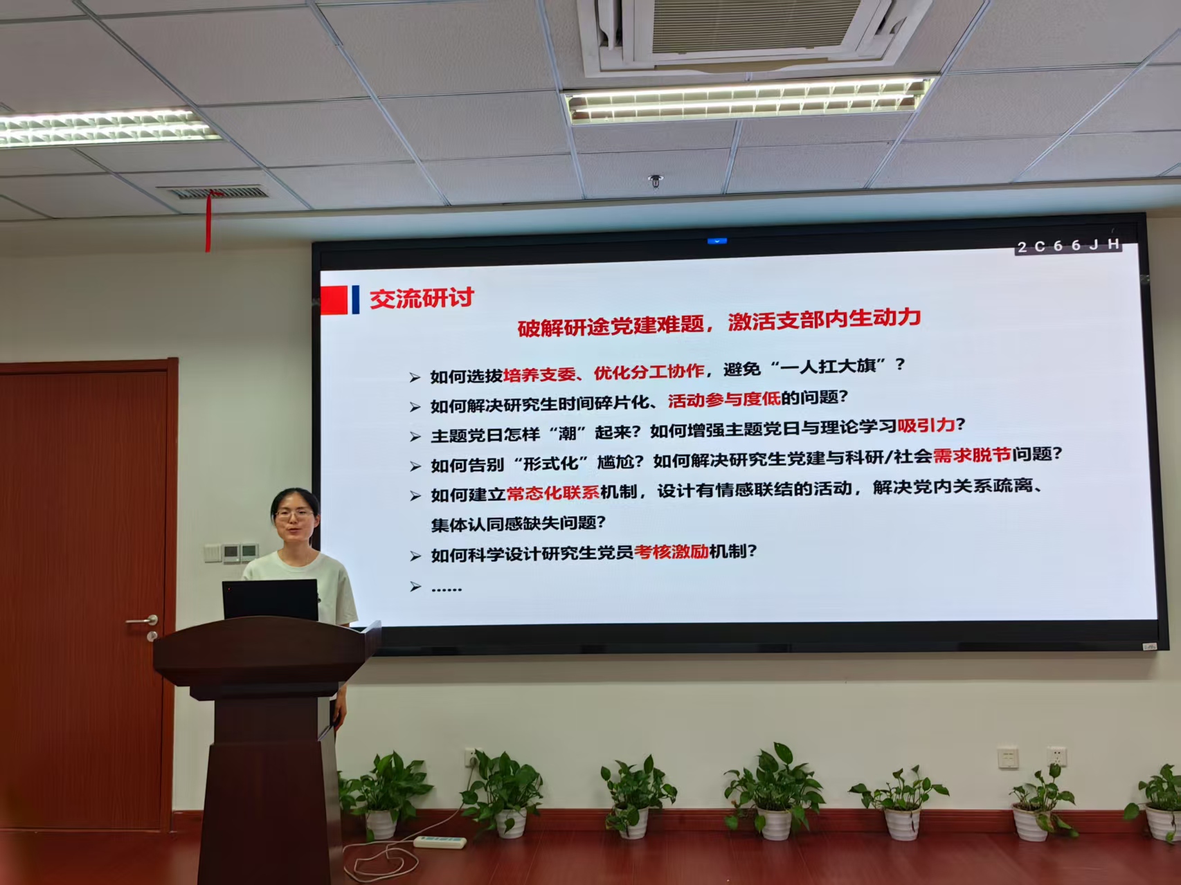 活動伊始,兩位國家級樣板黨支部負責(zé)人分別圍繞黨建工作特色與實踐經(jīng)驗展開深度分享。吳佳昊書記以“實施‘紅色成長計劃’,提升黨員教育管理質(zhì)量”為主題,系統(tǒng)介紹了“紅色會客廳”“紅色先鋒志”“紅色實踐行”“紅色接班人”“紅色監(jiān)督窗”五大特色模塊,通過沉浸式理論學(xué)習(xí)與實踐育人機制,為破解活動參與率低、黨員聯(lián)系不緊密、黨建業(yè)務(wù)脫節(jié)等共性問題提供了可復(fù)制的解決方案。張子怡副書記則從打造德育共同體、學(xué)習(xí)共同體、發(fā)展共同體、文化共同體切入,闡釋了建設(shè)具有涉農(nóng)學(xué)科特色的樣板支部實踐路徑。大家表示,兩位書記的分享既有理論高度又具實操性,提供了破解研究生支部黨建難題的參考路徑。