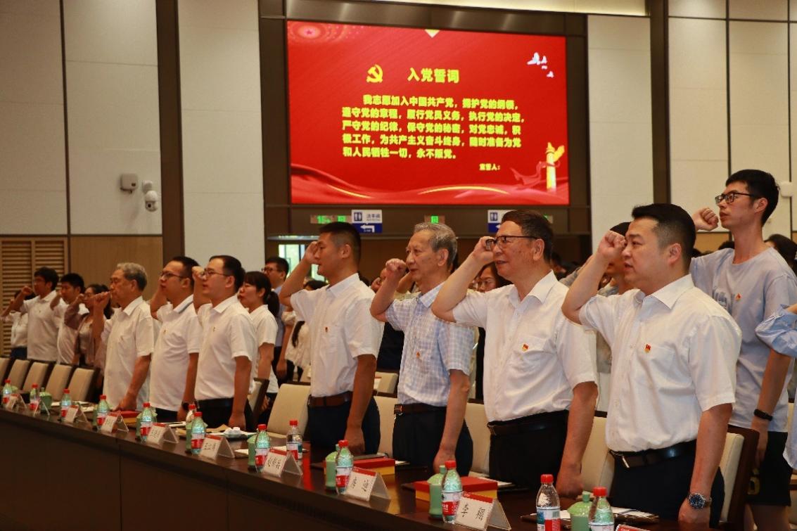 在學(xué)院黨委書記王曉燕老師的帶領(lǐng)下,新發(fā)展黨員上臺進(jìn)行莊嚴(yán)的入黨宣誓。臺上的新發(fā)展黨員和臺下的黨員共同舉起右拳,重溫入黨誓詞,不忘初心,牢記使命,堅(jiān)定自身的信念,永葆一顆赤子之心。