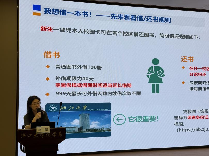 9月23日晚,浙江大學(xué)校圖書館情報(bào)分析中心的李懿老師為新生同學(xué)們作《圖書館資源使用》專題報(bào)告。報(bào)告重點(diǎn)闡述如何提升文獻(xiàn)檢索效率,指導(dǎo)新生通過優(yōu)化關(guān)鍵詞組合、篩選核心數(shù)據(jù)庫等方式增強(qiáng) “信息獲取能力”,幫助大家快速定位研究領(lǐng)域關(guān)鍵文獻(xiàn),凸顯學(xué)術(shù)信息篩選的精準(zhǔn)度與時(shí)效性價(jià)值;同時(shí),李懿老師系統(tǒng)介紹了浙大圖書館的資源體系,涵蓋中外文電子文獻(xiàn)庫的分類使用等。這些實(shí)用信息為剛邁入研究生階段的新生搭建了高效科研信息獲取路徑,切實(shí)為其后續(xù)開展學(xué)術(shù)研究提供支撐,筑牢科研入門的信息基礎(chǔ)。