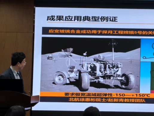 報告最后,任曉兵教授介紹了團隊研究成果的應(yīng)用,例如應(yīng)變玻璃合金成功用于我國探月工程嫦娥5號及重要戰(zhàn)略裝備,且應(yīng)變玻璃(strain glass)新領(lǐng)域研究成為近10年來多個國際會議的主題之一,并被美國NASA等科技巨頭組成的形狀記憶合金產(chǎn)學研聯(lián)合體(CASMART)列為重點研究方向。