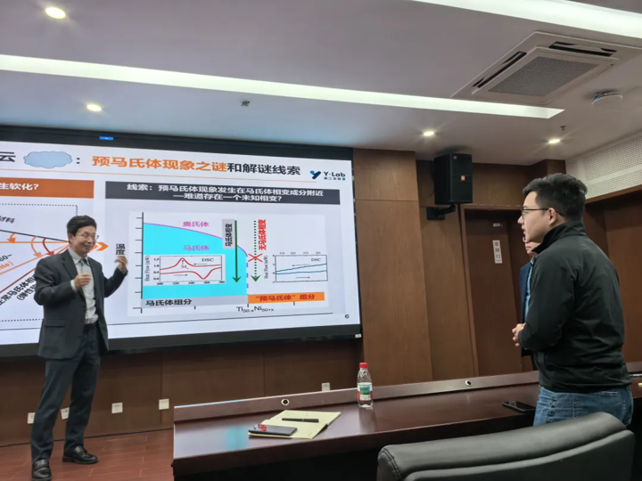 報告結(jié)束后的互動環(huán)節(jié),現(xiàn)場朱鐵軍教授團隊成員以及材料學院現(xiàn)場其他師生踴躍提問,圍繞基于經(jīng)典鐵性物理大廈Landau理論任曉兵教授團隊開發(fā)的新理論,正逆壓電效應(yīng)等問題進行了深入交流,朱鐵軍老師也根據(jù)這些問題向研究生們提出了很多建議,現(xiàn)場學術(shù)氛圍濃厚,聽眾紛紛表示受益匪淺。