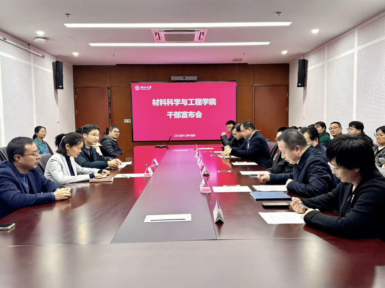 12月15日下午,材料科學(xué)與工程學(xué)院干部宣布會在紫金港校區(qū)和同苑召開。黨委組織部副部長夏雷宣讀任命文件并講話,學(xué)院黨委書記黃任群主持會議。